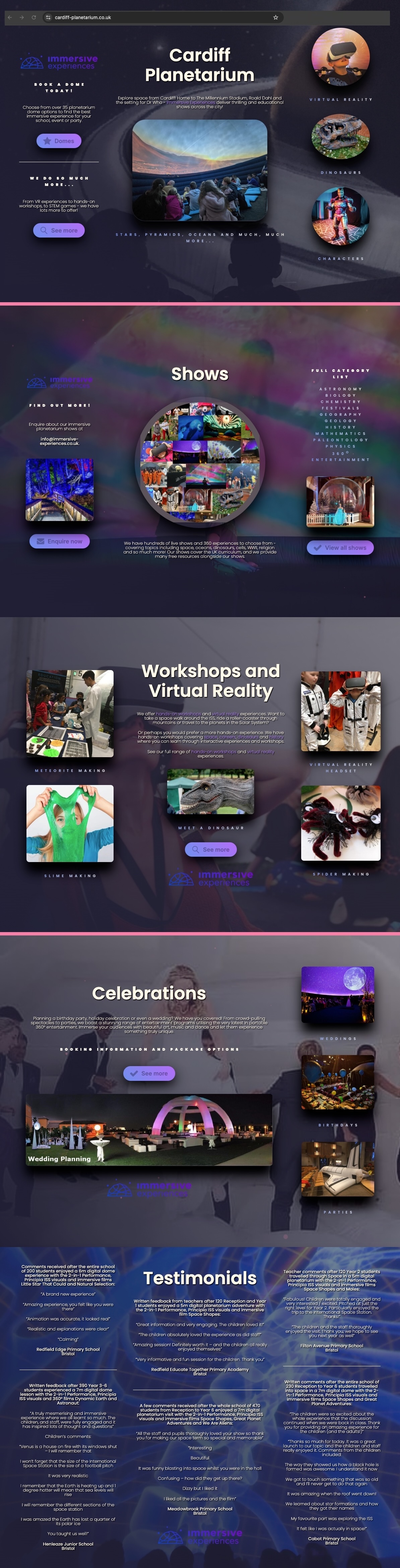 In June 2011 Mario Di Maggio and Zee Dinally were employed full-time at Thinktank Planetarium, Birmingham (UK) as Planetarium Manager and Planetarium Presenter respectively. Mario also worked part-time as the European distributor for Discovery Dome (selling mobile planetarium equipment). Zee wanted to run a part-time planetarium initiative like Mario, so he asked to rent Mario's 5m inflatable dome to launch his own sideline business visiting schools. Mario agreed and allowed Zee to develop his part-time business during down-time office hours at Thinktank. Mario even suggested the name 'Immersive Theatres'. This is how Immersive Theatres was born.