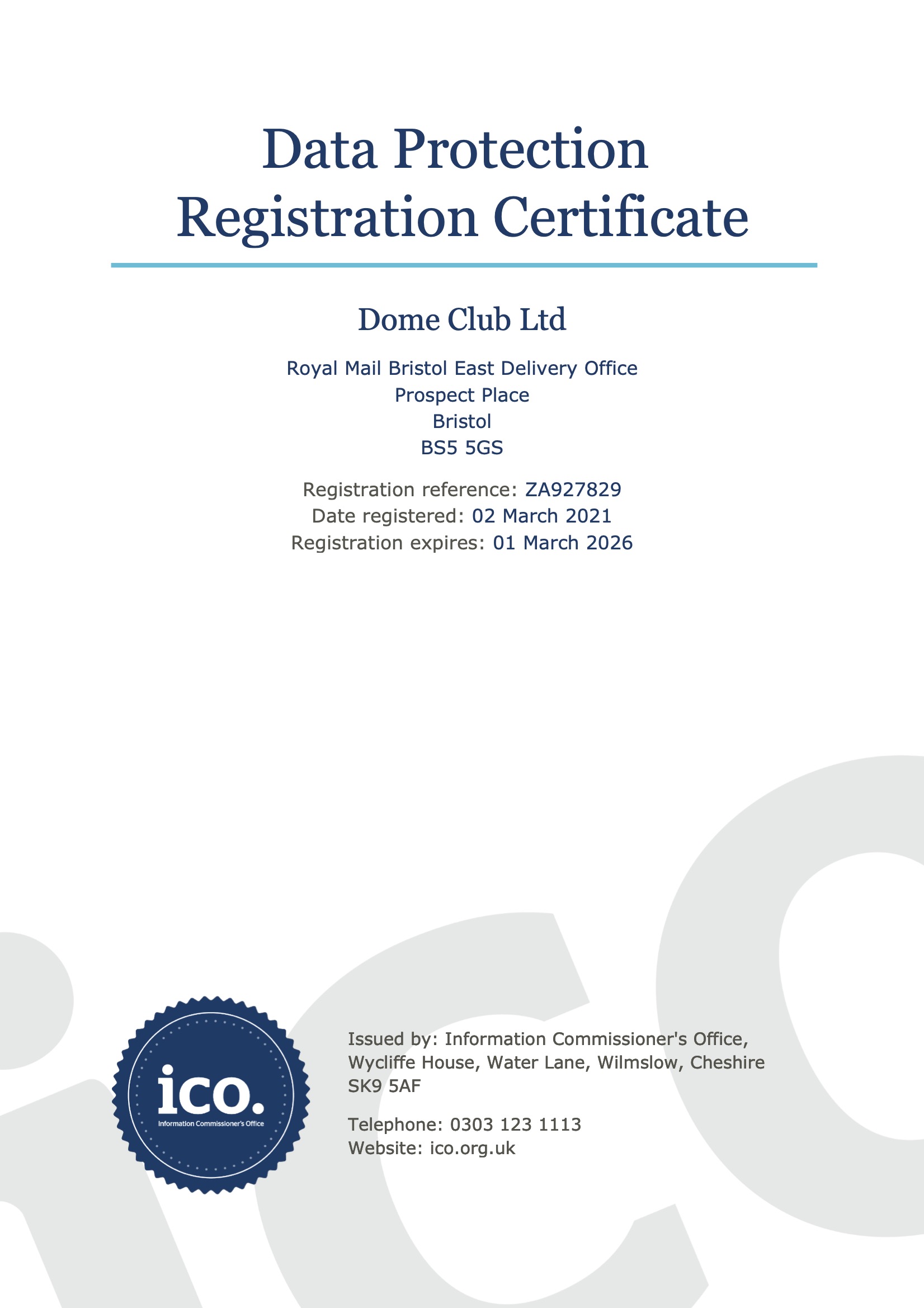 Information Commissioner's Office (ICO) certificate